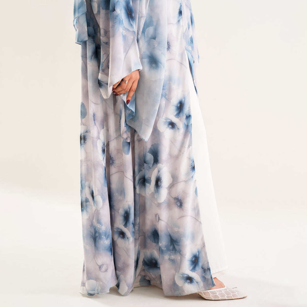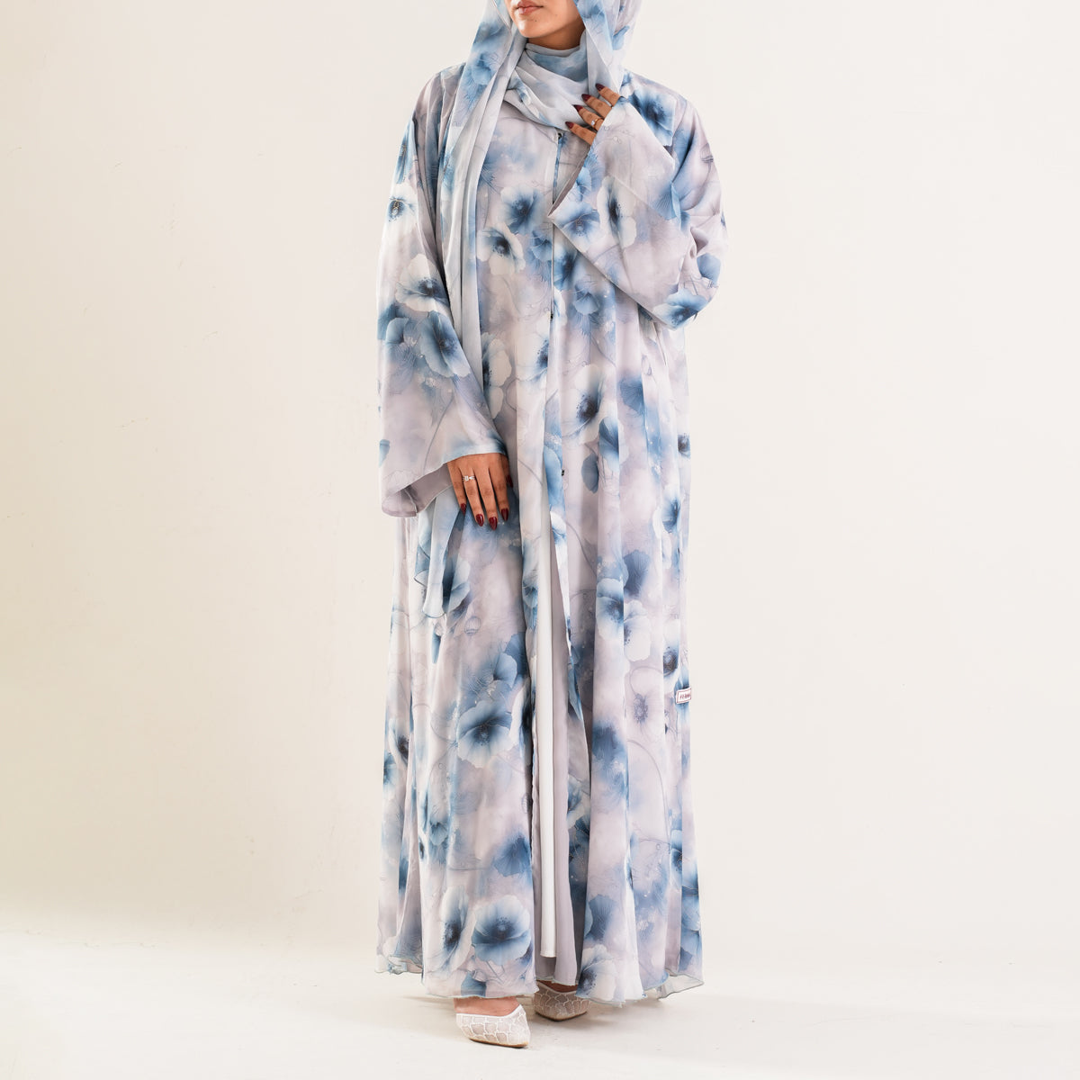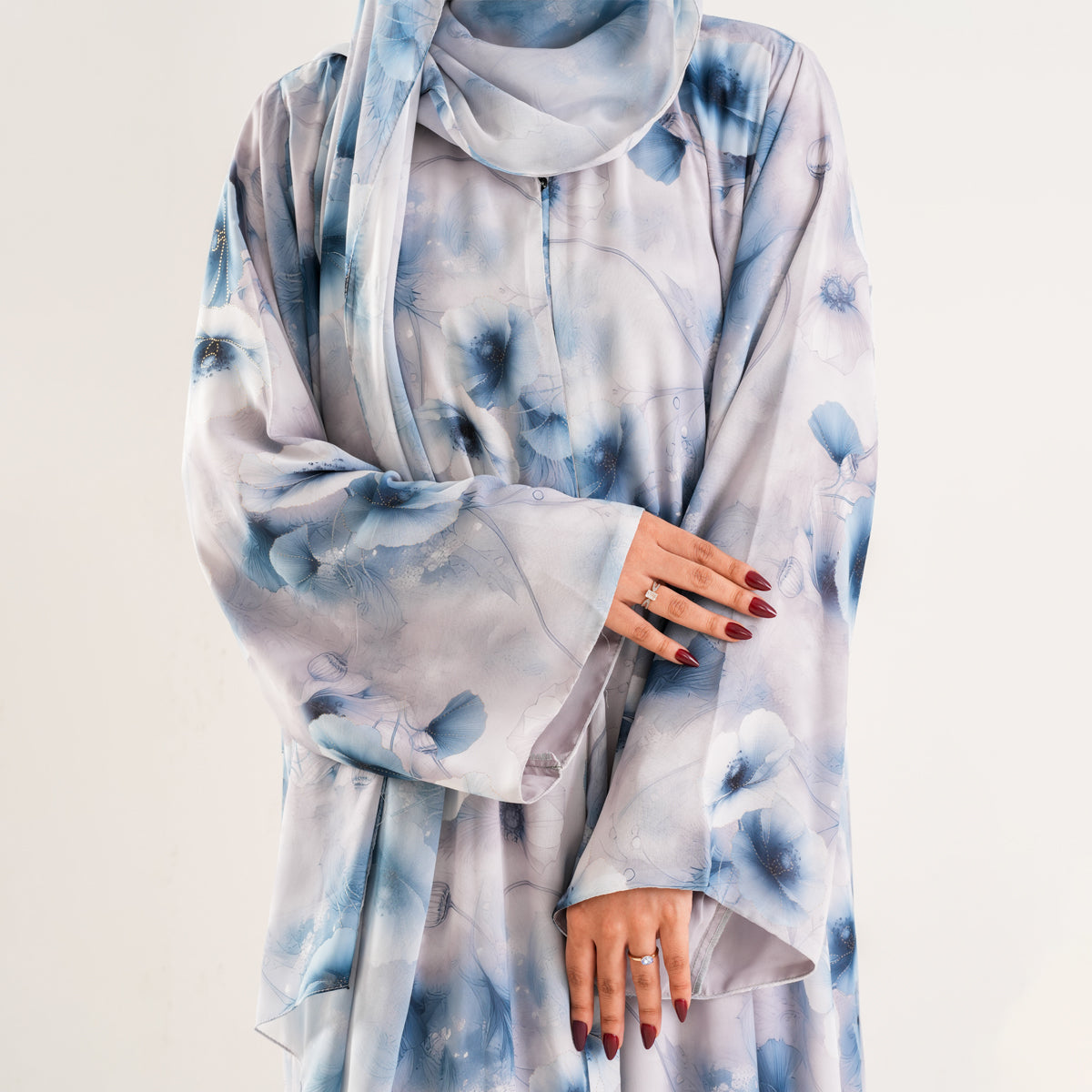 A serene blend of elegance and ease - this printed abaya features delicate blue florals and a soft, graceful flow. Lightweight, breathable, and perfect for everyday casual wear.